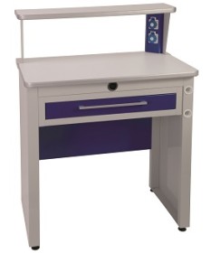 Het is voorzien van alle accessoires die nodig zijn voor de prothesen: 2 stopcontacten, plank, lades, roestvrijstalen pluggen, aanleg voor zuigkracht, intrekbare souflette etc.
