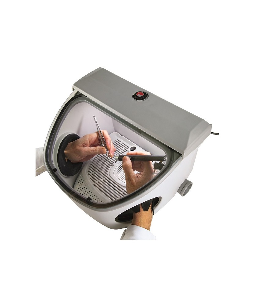 De Eclipse werkcabine is ideaal voor dit soort werk. Met zijn brede gezichtsveld, interne daglichtverlichting en beschermkappen kan de professional schoon en comfortabel werken. Met zijn kleine afmetingen en lichte gewicht kan hij een vaste plaats innemen of een nomadisch element zijn in het laboratorium. eenvoudige aansluiting op een stofzuiger (niet meegeleverd).