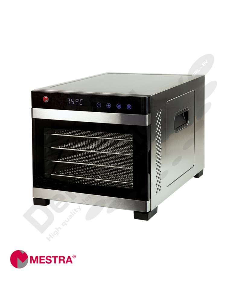 Een ventilator circuleert de hete lucht en zorgt voor een gelijkmatige droging.