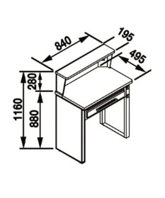 Twee stopcontacten, plank, lade, enz.