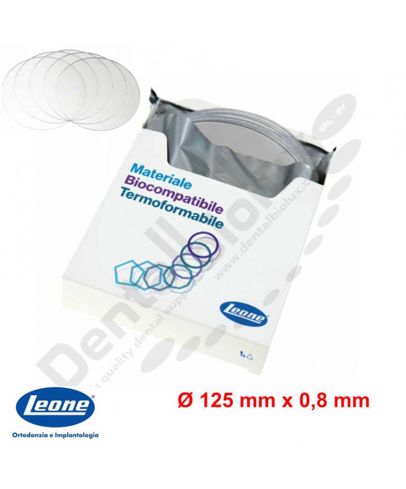 De schijven en vierkante platen zijn gemaakt van PET-G (glycolgemodificeerd polyethyleentereftalaat), een materiaal dat ideaal is voor thermovormen voor de productie van aligners en esthetische retentiebeugels voor na de behandeling.