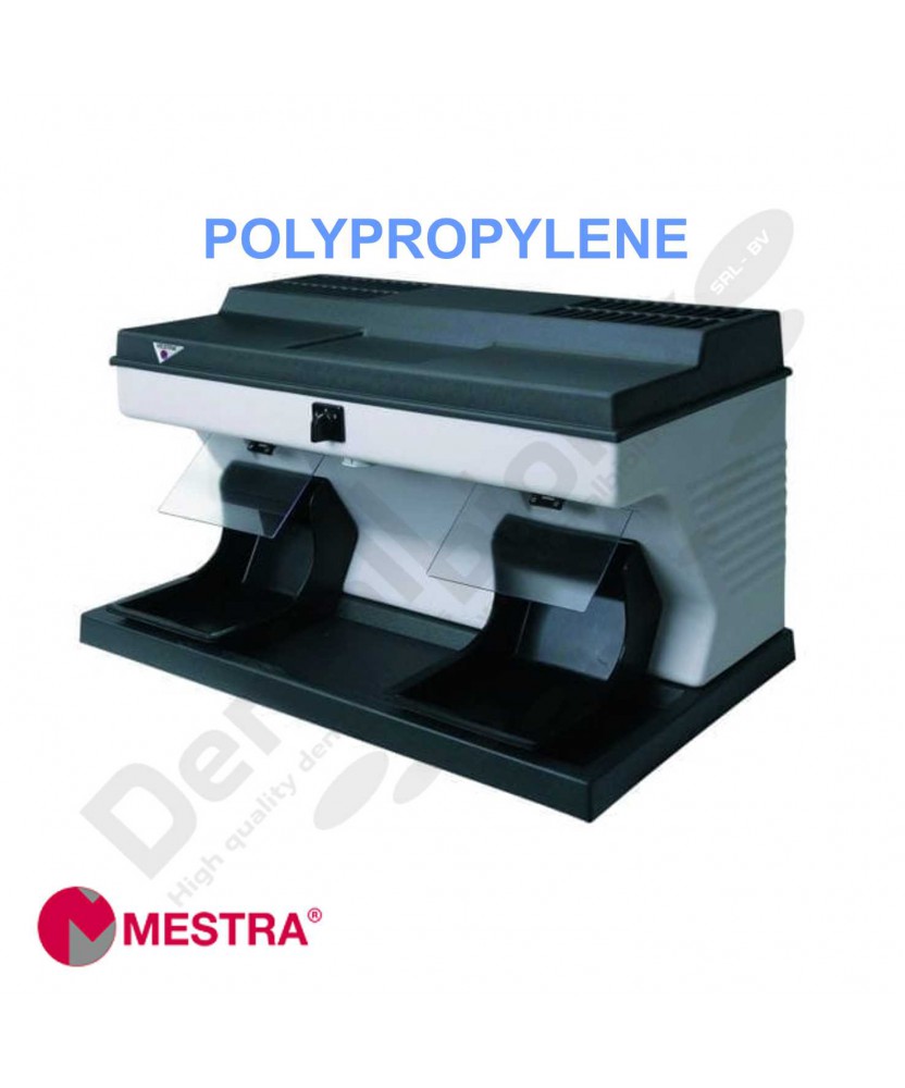 De structuur van de kast is gemaakt van zeer resistent polypropyleen in combinatie met een stalen subframe, waardoor een zeer solide eenheid ontstaat. Dit elimineert de corrosieproblemen die met dit type machine gepaard gaan. De polijstkast is geschikt voor elk type machine, maar is speciaal ontworpen voor de MESTRA-modellen.