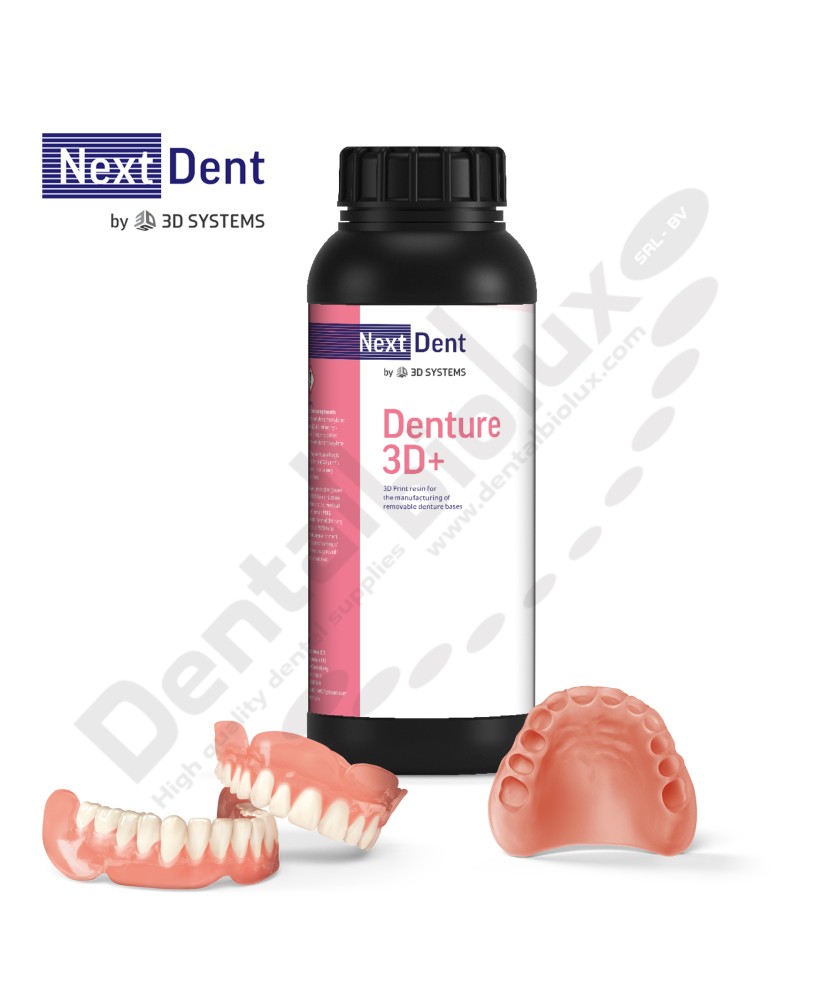 NextDent Denture 3D+ is a biocompatible Class IIa material suitable for printing all types of removable denture bases. This material has excellent mechanical properties and is comparable to conventional denture base materials. Available in colors: Dark Pink, Light Pink, Opaque Pink, Red Pink, Translucent Pink and new shade Classic Pink.