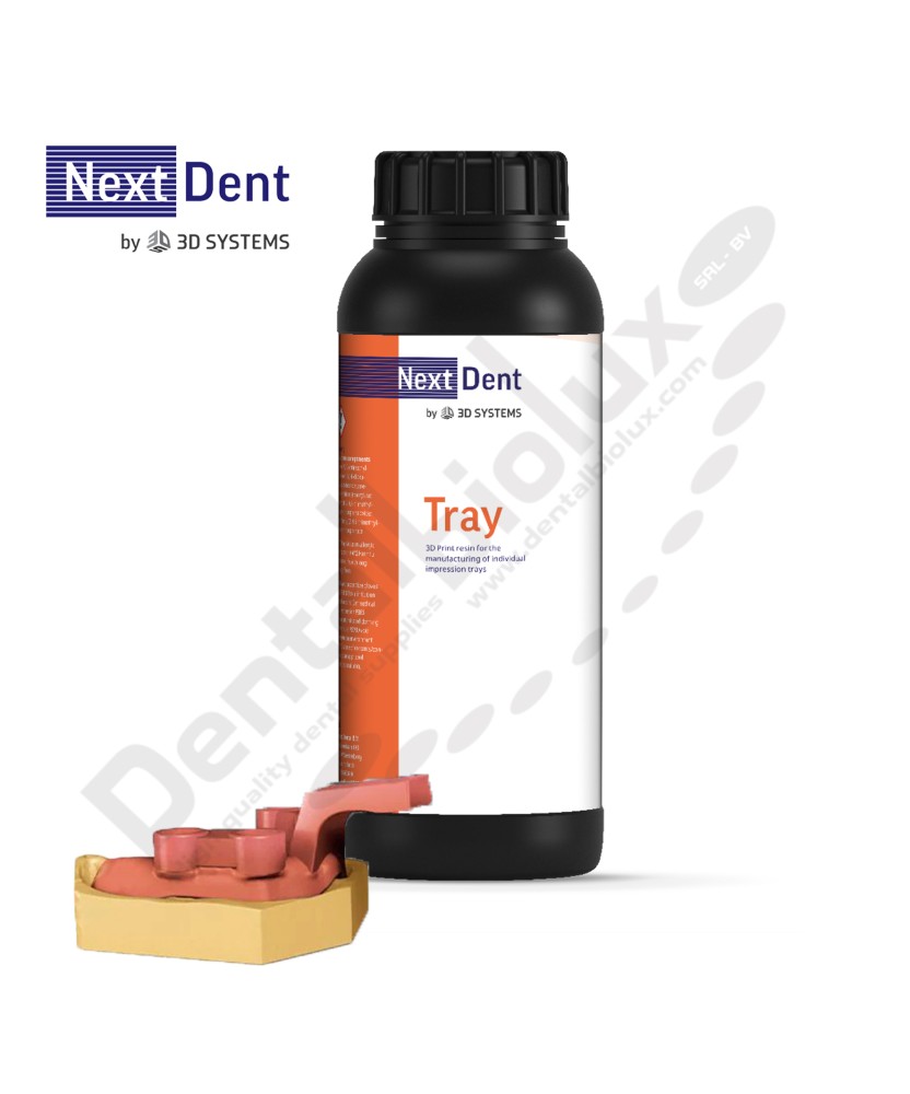 NextDent Tray is a biocompatible Class I material designed to print individual impression trays. The material distinguishes itself through high printing speed and accuracy. NextDent Tray resin enables technicians to make even the most complex trays in a matter of minutes. The printed trays are rigid and suitable for all types of impression material, making high-quality, high-precision impressions possible. Available in colors Blue and Pink.