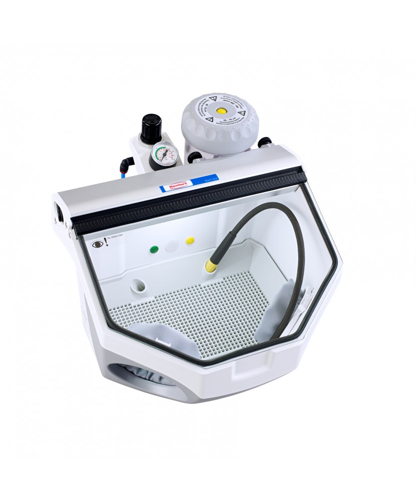 De Basic Eco micro-zandstraler kan worden uitgerust met twee silo's en biedt maximale precisie in een zeer compact pakket.