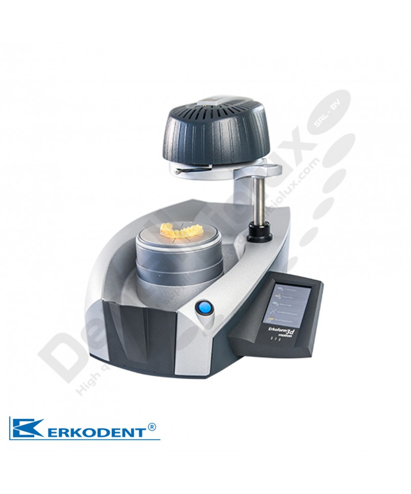 Order no.188500Description (name)ERKOFORM-3dadditional infoContents1Unit of contentspieceMedical device infono medical deviceCE-labeling infoitem is labeled CEHazardous material infoitem is not hazardousCountry of originorigin of item is the EUApplication fieldFor all dental thermoforming.UsageAs a short instruction the touchpanel leads you through the thermoforming process and urges you to take necessary steps. All ERKODENT thermoforming materials are covered in the software. Just choose the desired material and thickness from the touchpanel and press on start. If you wish, for special applications you can modify the shown heating and cooling down times without modifying the standards. The display always gives information about what is happening and how much time is remaining for the actual step. If you do not execute the next step, for safety reasons the machine switches off after 10 sec. It is easy to add new thermoforming materials to the software.Product-descriptionVacuum thermoforming unit with touchless temperature control, reserve vacuum and touch panel. No compressed air supply is required - just plug and play. No preheating time. Sudden vacuum, built up before thermoforming process (Pat. 19511064). More space for higher models. Perpendicular prestretching and forming produces results of even foil thicknesses. Completely accessible model during the heating process. Handy one-hand foil fixation for foil thicknesses ranging from 0 to 5 mm. The Occluform-3 can be installed (accessory).
